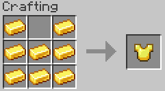 Minecraft altın zırh diğer zırhlar gibi kask, göğüslük, pantolon ve ayakkabıdan oluşuyor. Altın kask yapmak için beş adet altın kullanmanız gerekiyor. Altın göğüslük yani zırhın en önemli kısmı için ise sekiz adet altını U şeklinde çalışma masasına yerleştirmelisiniz. Altın pantolon için dört adet altını çalışma masasına yerleştirmeniz yeterli olacaktır. Altın, yüksek koruma değerleri sunar ve bu zırhı kullanma olanağınız bulunuyorsa mutlaka yapmanız tavsiye edilir.